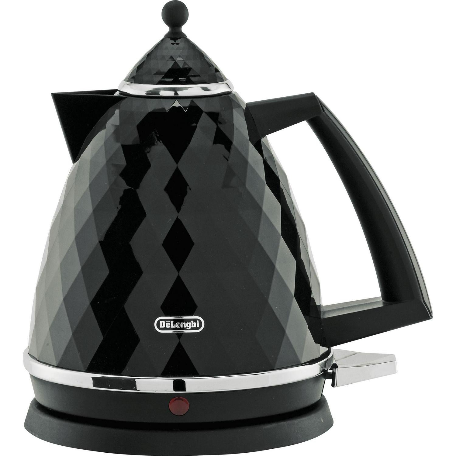 The De'Longhi Brillante kettle showcases a unique multifaceted black finish accented with chrome details, embodying contemporary Italian design principles. This appliance is engineered for daily convenience while ensuring the water you use for tea or coffee is consistently clean.