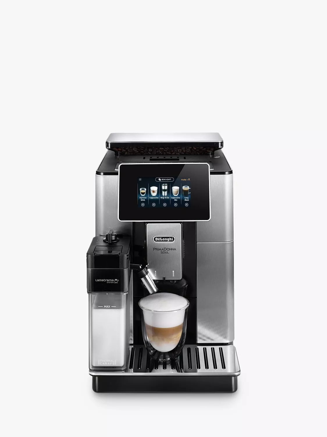 Indulge in cafe-quality coffee at home with the De'Longhi PrimaDonna Soul. This fully automatic bean-to-cup machine delivers an unparalleled coffee experience, crafting 21 different beverages at the touch of a button. Enjoy personalized coffee creations and seamless app connectivity for ultimate convenience.