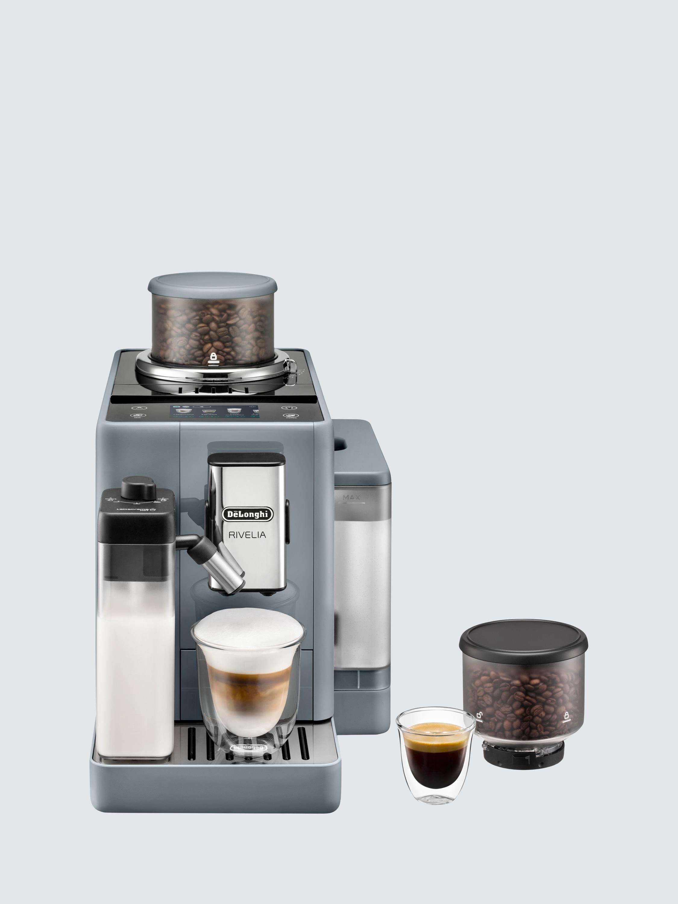 Switch to a new coffee experience with the Rivelia automatic bean to cup coffee machine, featuring two interchangeable bean hoppers, for double the amount of delicious coffee!