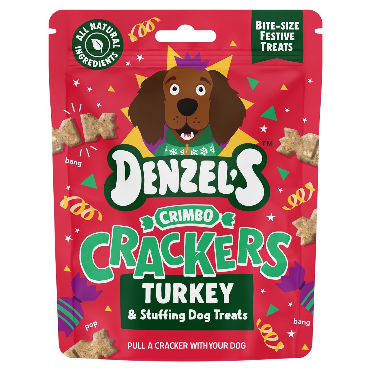 Celebrate the festive season by sharing a special moment with your pet using Denzel's Crimbo Crackers. These delightful, soft-baked snacks are flavoured specifically with tasty turkey and stuffing combinations your dog will enjoy. They offer a comforting way to include your companion in holiday celebrations.