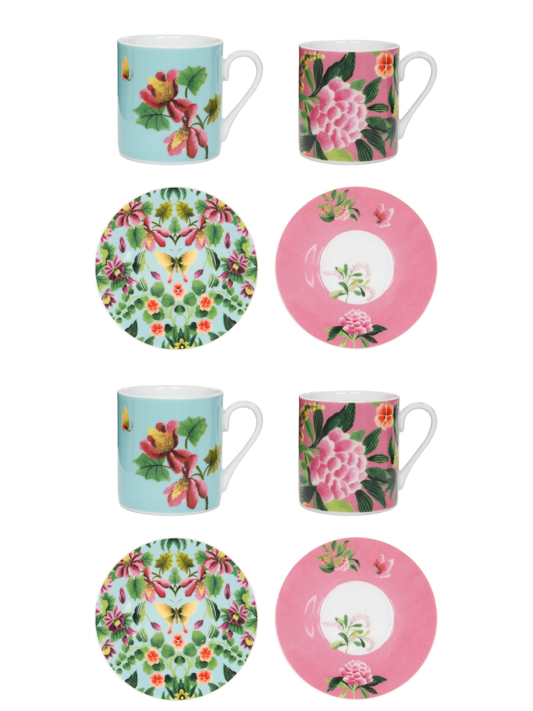 Designers Guild Ikebana Damask Espresso Cups and Saucers Set Of 4