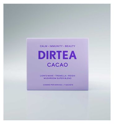 DIRTEA Cacao supports the nervous system. Made with raw cacao for a deep, rich flavour and infused with Lion's Mane, hydrating Tremella, and soothing Reishi mushroom extracts. Enjoy the luxurious taste of the healthiest hot chocolate, nourishing your mind and body, savouring every moment of deep, restorative sleep.