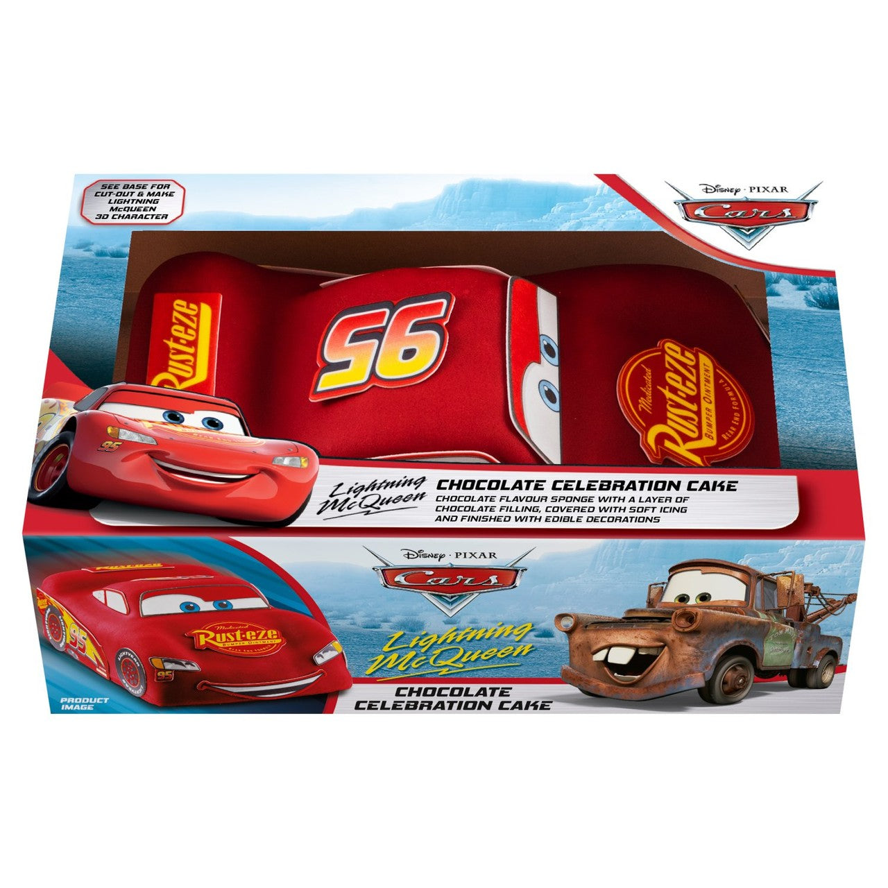 This Disney Cars novelty cake is expertly shaped like Lightning McQueen, offering a fun centrepiece for any themed occasion. It combines a rich chocolate sponge with a creamy chocolate filling, all coated in soft icing for excellent appeal. The packaging also details a feature allowing you to create an additional 3D character decoration from a cut-out section.