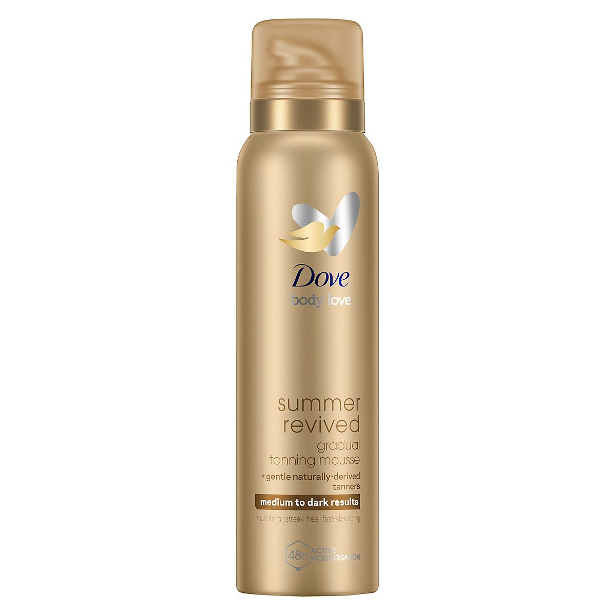 The fast-absorbing self-tanning mousse glides on easily for a streak-free, gradually building tan. Dove DermaSpa Summer Revived Gradual Self-Tan Medium to Dark Body Mousse provides the perfect natural-looking self-tan for medium to dark skin tones.