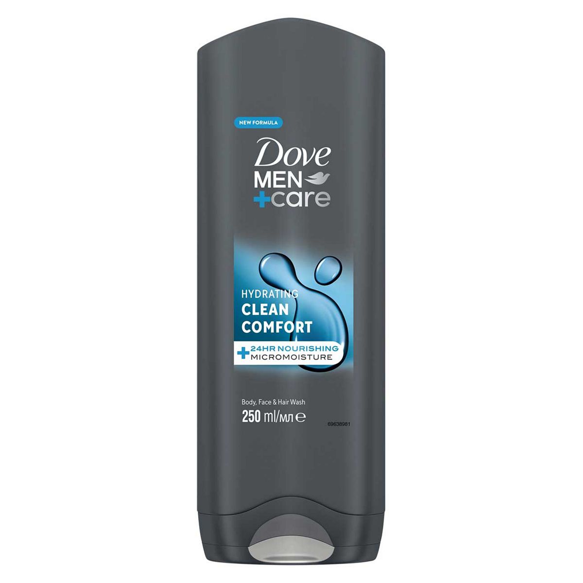 Dove Men+Care Clean Comfort Bodywash 250ml Dove Men+Care Body and Face Wash Hydrates for Healthier, Stronger Skin This shower gel is infused with micromoisture technology which protects your skin against dryness Dermatologically tested Delivers a refreshing clean and total skin comfort For best results, use with Active Clean shower tool Suitable for everyday use