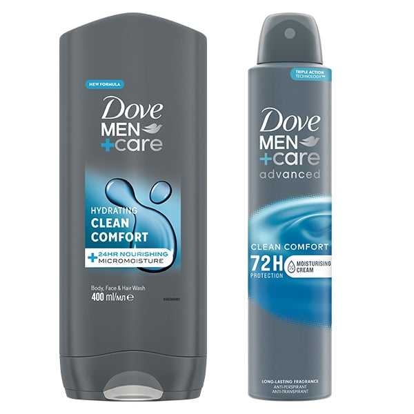 includes dove mencare hydrating clean comfort hair body face wash dove mencare advanced antiperspirant deodorant clean 200ml