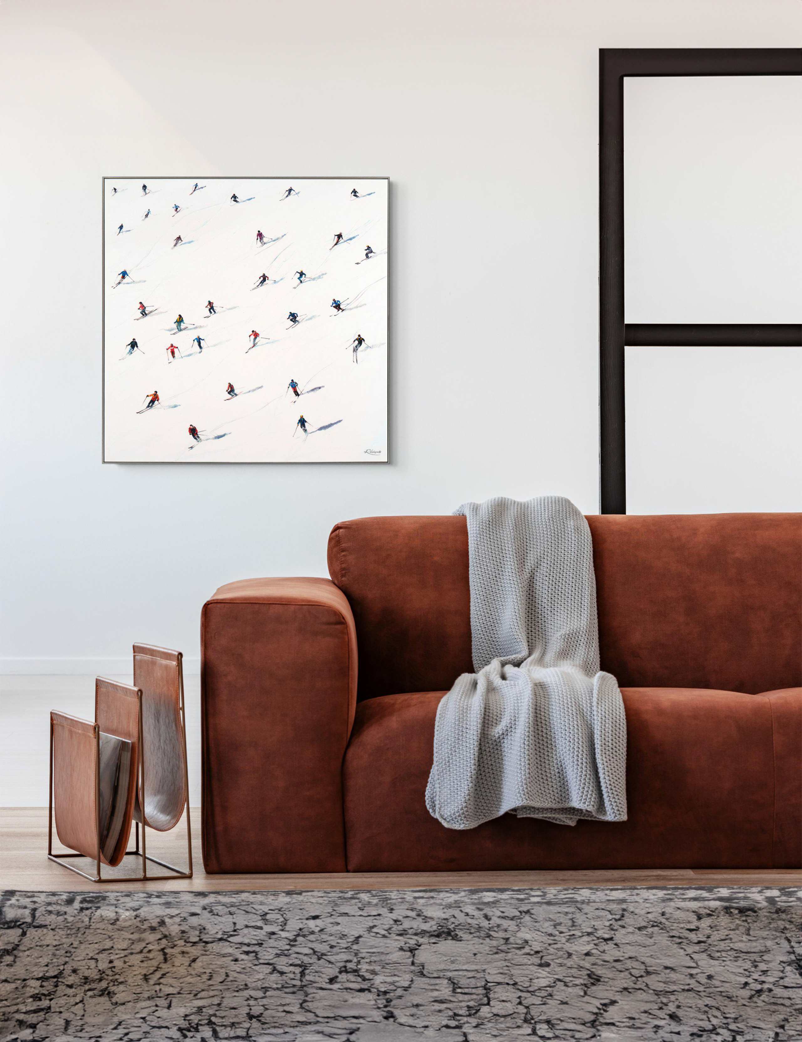 Introduce a dynamic visual element into your space with this large, square framed art piece created by Gallery Direct. This specific wall art centres around a compelling ski theme, intended to be a true conversation starter for guests. It arrives completely framed and ready to hang upon delivery.