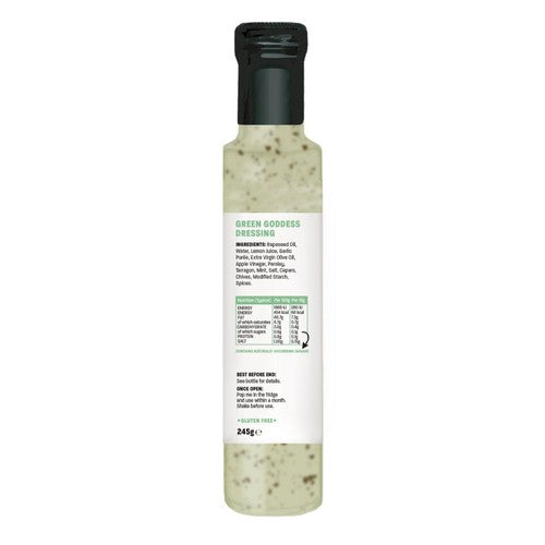 Dr Wills Green Goddess Dressing brings a vibrant, fresh, and zesty flavour profile to your plate, perfect for enhancing everyday meals. It offers herby goodness all day long. This vegetarian dressing captures the essence of garden herbs blended masterfully with sharp citrus notes for balanced taste.