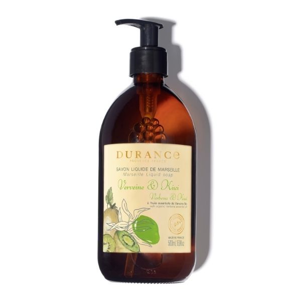 Durance Marseille Liquid Soap Verbena & Kiwi 500ml Experience the invigorating fusion of citrus and fruit with Durance Marseille Liquid Soap Verbena & Kiwi. Crafted with 98% natural ingredients, this luxurious soap gently cleanses the skin while enveloping your senses in a vibrant and refreshing fragrance. Inspired by the lush landscapes of Provence, this liquid soap offers a revitalizing experience with every use. Fragrance Profile: Top Notes: Green apple, kiwi Heart Notes: Verbena, rhubarb Base Notes: Blackcurrant Key Benefits: Traditional Craftsmanship – Cooked in a cauldron following the time-honored Marseille soap-making tradition for an authentic, high-quality formula. Gentle & Nourishing – Enriched with organic olive oil from Provence and Camargue red rice extract, leaving the skin soft and hydrated. Energizing Fragrance – Infused with organic exotic verbena essential oil, known for its uplifting properties, blended with the fruity zest of kiwi and blackcurrant. Eco-Conscious & Refillable – Packaged in a recyclable glass bottle, designed to be refilled and reused, reducing waste. Multi-Use – Ideal for daily use on both hands and body, gently cleansing without drying the skin. How to Use: Apply a small amount to wet hands or body, lather gently, and rinse thoroughly. For an enhanced sensory experience, pair it with Durance Hand Cream Verbena & Kiwi for long-lasting fragrance and nourishment. Crafted in Provence, this liquid soap embodies the elegance and purity of French artisanal expertise, making it an essential addition to any home.
