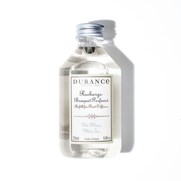 Durance Refill for Reed Diffuser White Tea 250ml Luxury French Home Fragrance Refill – Handcrafted in Provence Sustain a Refined and Delicate Ambiance with the Elegant Scent of White Tea Replenish your reed diffuser with the exquisite fragrance of White Tea, a refined and crystalline scent composed of green, soft, and slightly suave notes. This fragrance captures the subtlety and rarity of white tea, expressing delicacy and softness. This 250ml refill allows you to maintain an elegant and refreshing atmosphere in your home. Fragrance Profile Top Notes: White Tea, Cardamom Heart Notes: Rose, Jasmine, Geranium Base Notes: Sandalwood, Musk, Cedarwood Key Benefits Extended Enjoyment: This 250ml refill allows you to recharge your Durance reed diffuser more than twice, providing approximately two months of continuous diffusion. Sustainable Choice: Refilling your diffuser is an eco-friendly option, reducing waste and enabling you to continue enjoying your favorite scent without the need for a new diffuser set. Consistent Fragrance: Ensures a steady diffusion of scent, keeping your home continuously enveloped in the elegant aroma of White Tea. How to Use Carefully pour the refill liquid into your empty Durance reed diffuser bottle. Insert new natural rattan sticks into the bottle containing the fragrance. Allow the sticks to absorb the scent and naturally diffuse it into the room. For a more intense fragrance, occasionally flip the sticks to refresh the scent diffusion. Crafted in collaboration with master perfumers from Grasse, this White Tea fragrance refill allows you to continue transforming your interior into a refined and delicate haven, enveloping your space with the subtle and refreshing aromas of Provence.