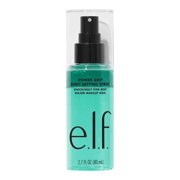shake up the way you set makeup get major makeup grip plus a dewy finish with elf cosmetics powder grip dewy setting spray featuring a waterbased phase and an oilbased phase the shockingly fine biphase formula is boosted with 5 aloe plus hyaluronic acid squalane and green tea seed oil shake to activate the power of both phases for dewy longlasting makeup looks biphase setting spray gives skin a dewy finish shake to activate shockingly fine mist sets makeup for longlasting wear infused with hydrating 5 aloe juice plus hyaluronic acid squalane green tea seed oil nonsticky feel