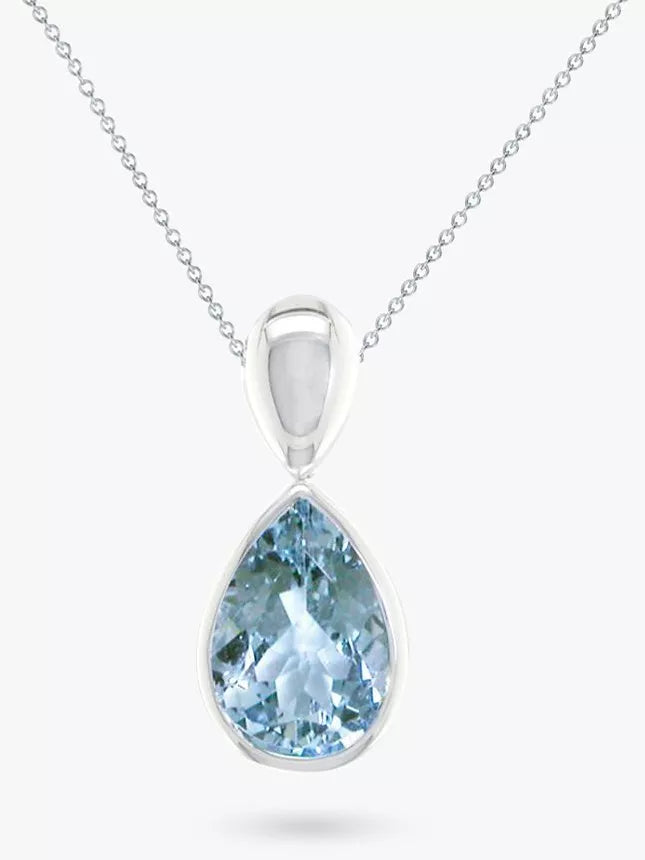 EWA 9ct White Gold Pear Aquamarine Pendant