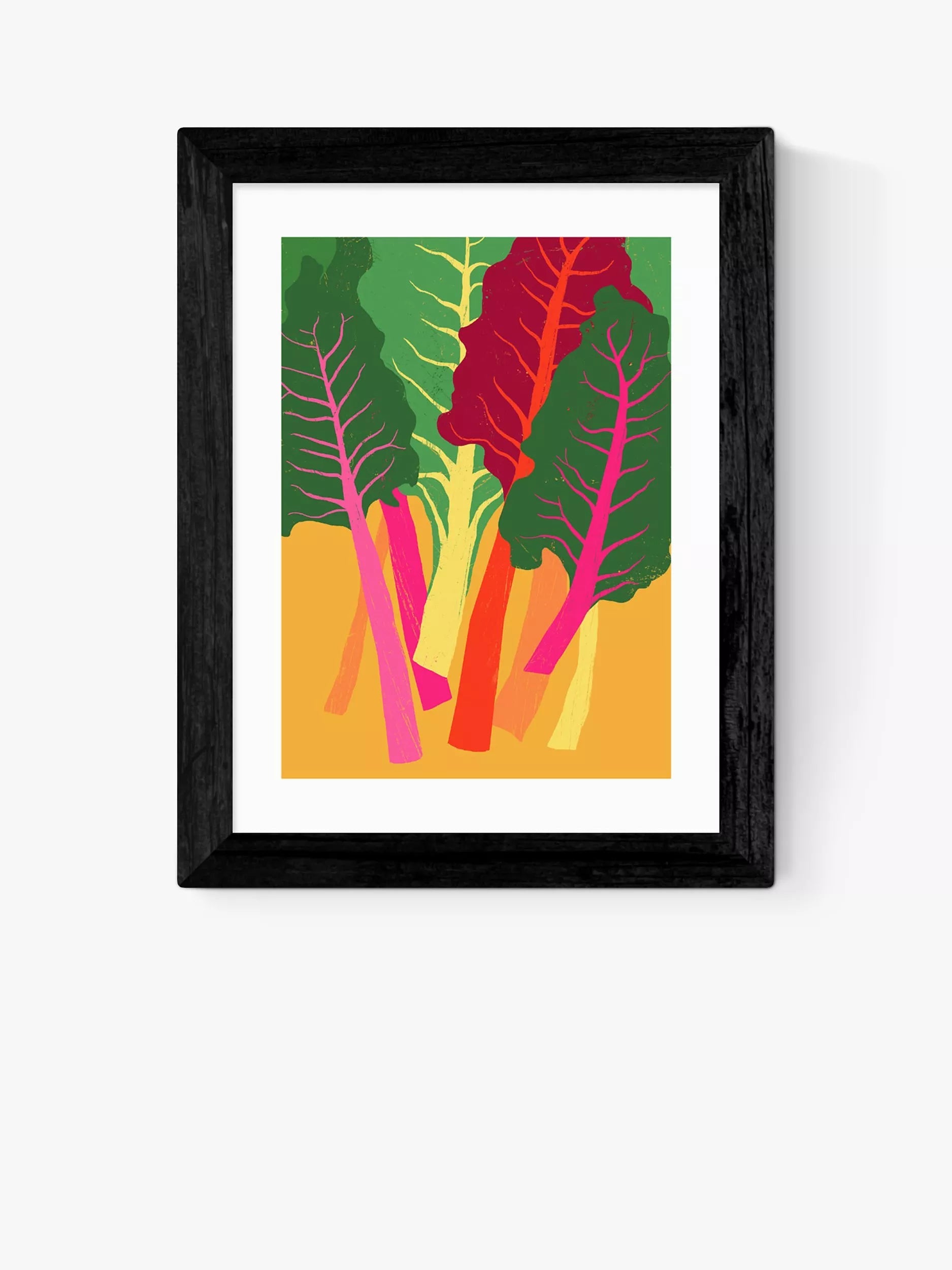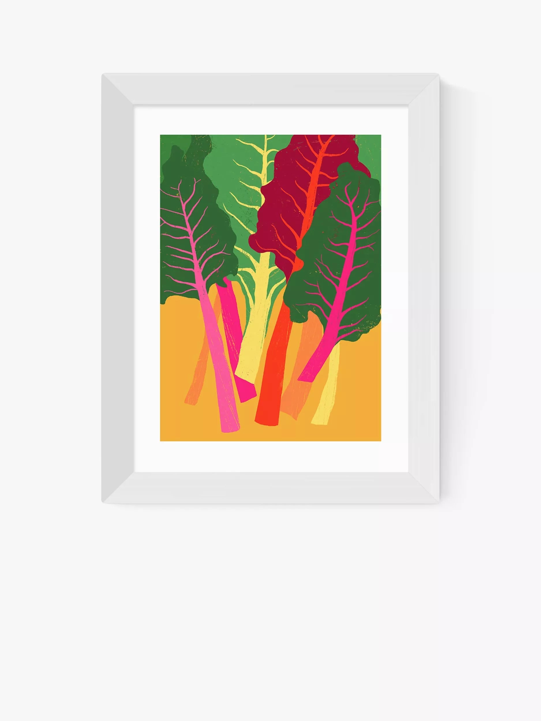 Enjoy colourful foodie inspiration on your kitchen wall with this chard framed print by artist Anek.