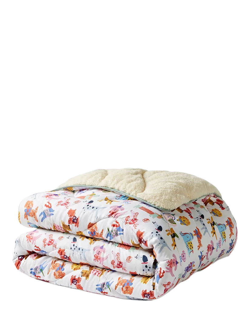 A collaboration between Eleanor Bowmer and Night Lark®, this cosy throw features an iconic Happy Dogs design, showcasing a playful array of dog breeds in a colourful palette. Made with super-soft Sherpa fleece on one side and with a silky microfibre reverse, it will keep you snug throughout winter. Its plush Smartfil® filling is made from recycled PET plastic bottles that will retain its shape, wash after wash, and it's even designed with popper buttons so that you can wrap it around yourself securely when lounging at home.