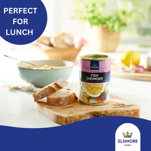 This Elsinore Fish Chowder delivers a comforting, hearty taste of the sea blended with a diverse medley of vegetables. This chef-inspired recipe has been updated for a superior flavour experience. It provides a rich and satisfying meal straight from the tin.