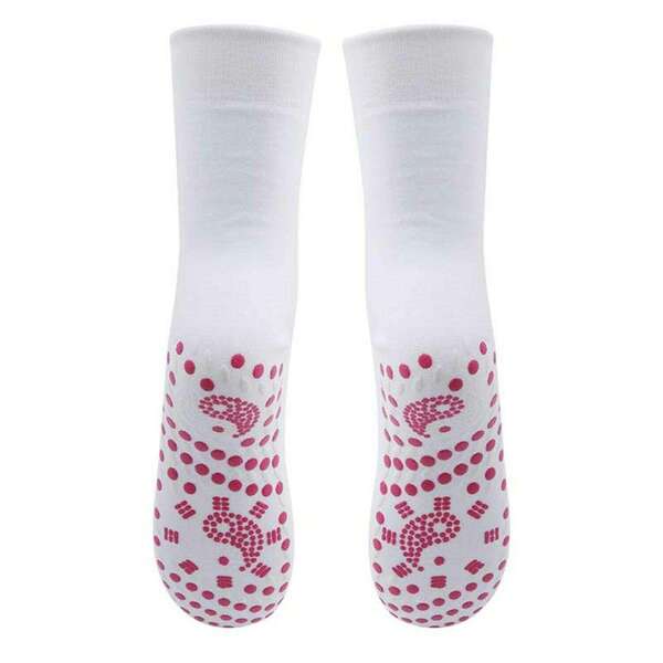 These Envie Tourmaline Magnetic Health Socks offer warmth and comfort for cold weather conditions. Constructed from soft, high-quality polyester cotton, they are designed for extended wear and durability. Note that the inherent self-heating nature may cause a slightly warm sensation when worn.