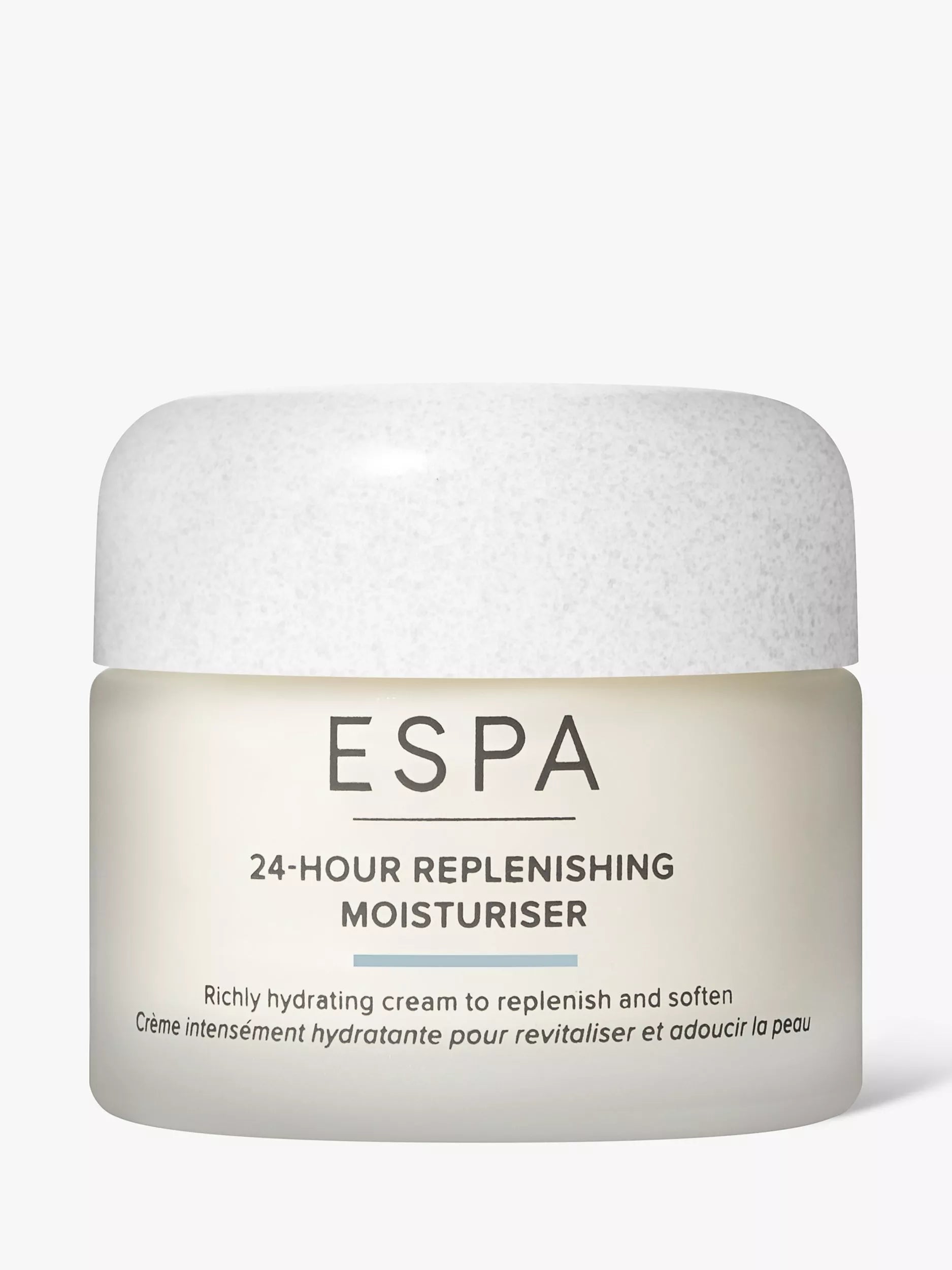 Discover ESPA 24-Hour Replenishing Moisturiser, a luxurious face cream that leaves your skin feeling soft and hydrated. This rich formula is perfect for replenishing dry skin, leaving a silky smooth complexion.