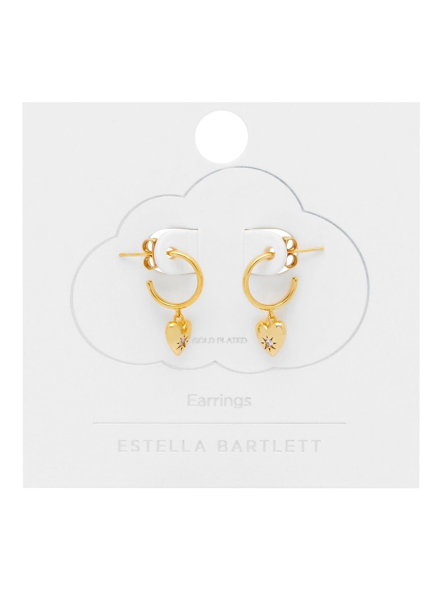 Estella Bartlett Gold Tone Puffed Heart Hoop Earrings with Pave Star