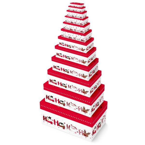 Material: Cardboard. Design: Candy, Oblong, Printed, Santa Claus, Stars, Text. Occasion: Christmas. Please Note: Includes Multiple Sizes. Stackable.