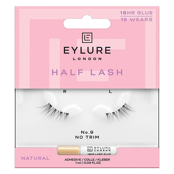 Read MoreHalf the Lash, Double the Wow Elevate your look effortlessly with our half lashes, designed to add just the right amount of volume and length for a natural yet striking finish. Perfectly sized, they require no trimming—just apply and go! Eylure No.9 is a sweet, wispy half lash that will add light volume to the outer corners of your eye. Reusable for up to 10 wears, every lash pack includes our latex-free lash glue, offering a secure hold that lasts up to 18 hours. Whether you're dressing up or keeping it casual, these half lashes deliver double the impact with half the effort. Get ready to wow, every time!