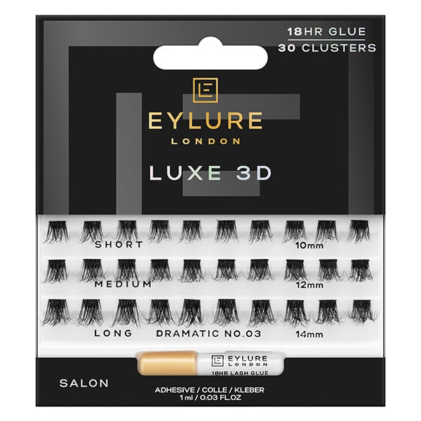 Read MoreCreate your own customisable lash look with our Luxe 3D Mink Dramatic No.03 cluster lashes. Perfect for above or underlash application, our Faux mink cluster lashes are ideal for creating a fuller, fluffy lash look. Easy to apply and comfortable to wear, our clusters come in 3 lash lengths- 10mm, 12mm & 14mm.