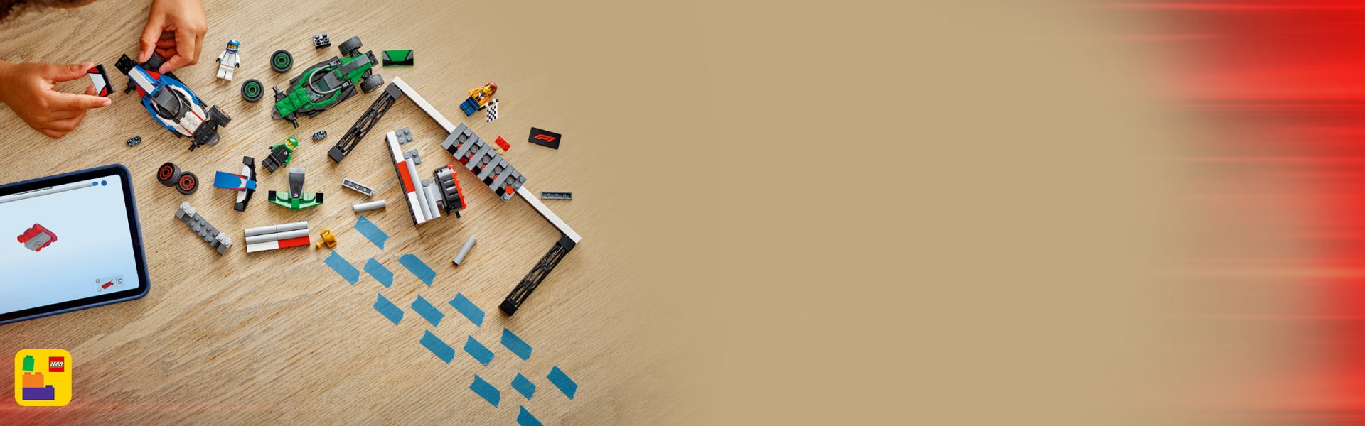 This LEGO F1 model includes a step-by-step printed construction guide and digital instructions in the LEGO Builder app. Here, kids can zoom in and rotate models in 3D, track their progress as they build, and explore and save other playsets.