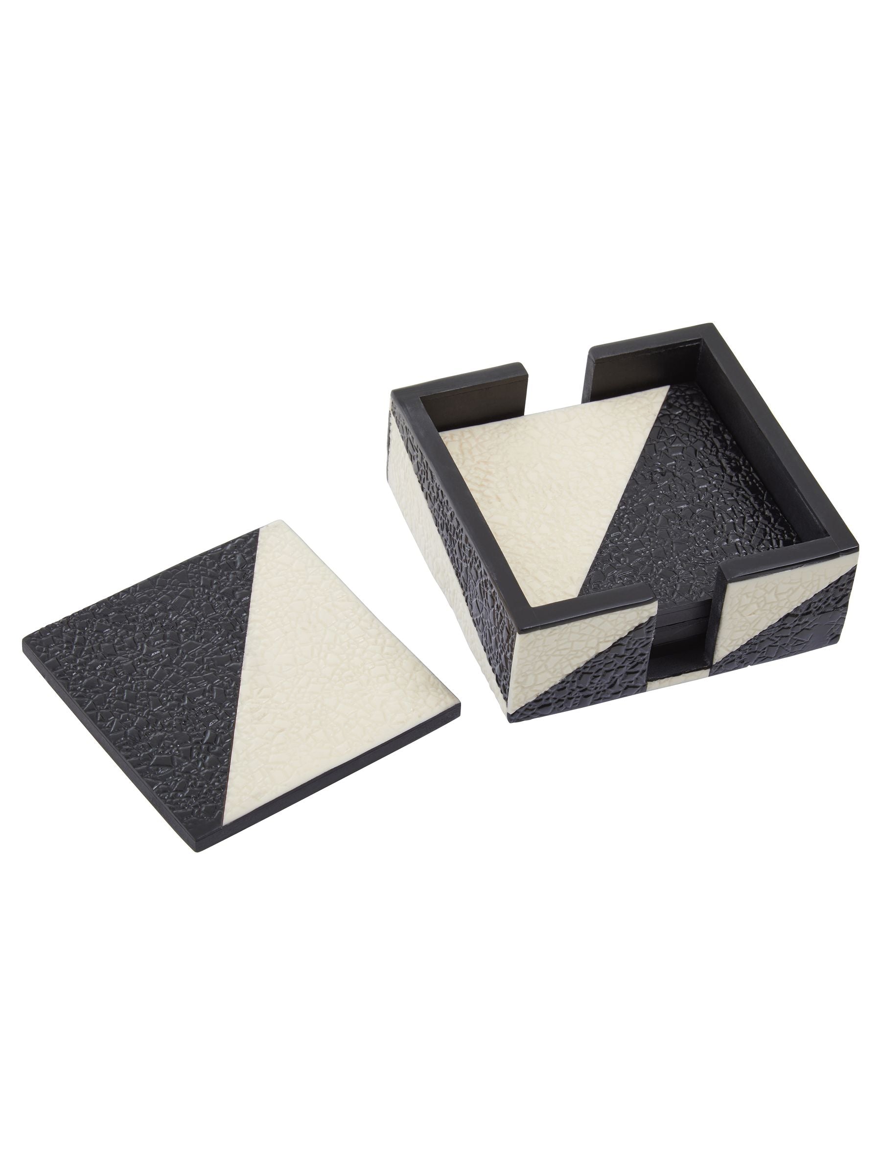 Ezra set of four black and white coasters and coaster holder. Read More