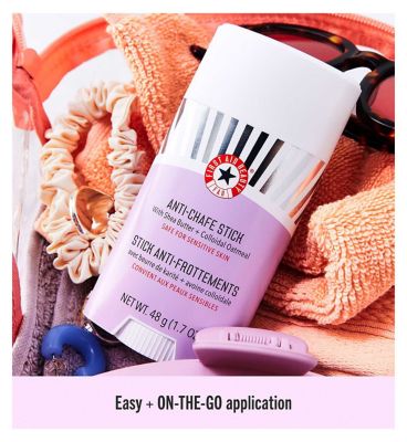 Protect your skin from uncomfortable friction with the First Aid Beauty Anti-Chafe Stick. This convenient 48g balm is formulated with Shea Butter and Colloidal Oatmeal to create a smooth barrier against rubbing.