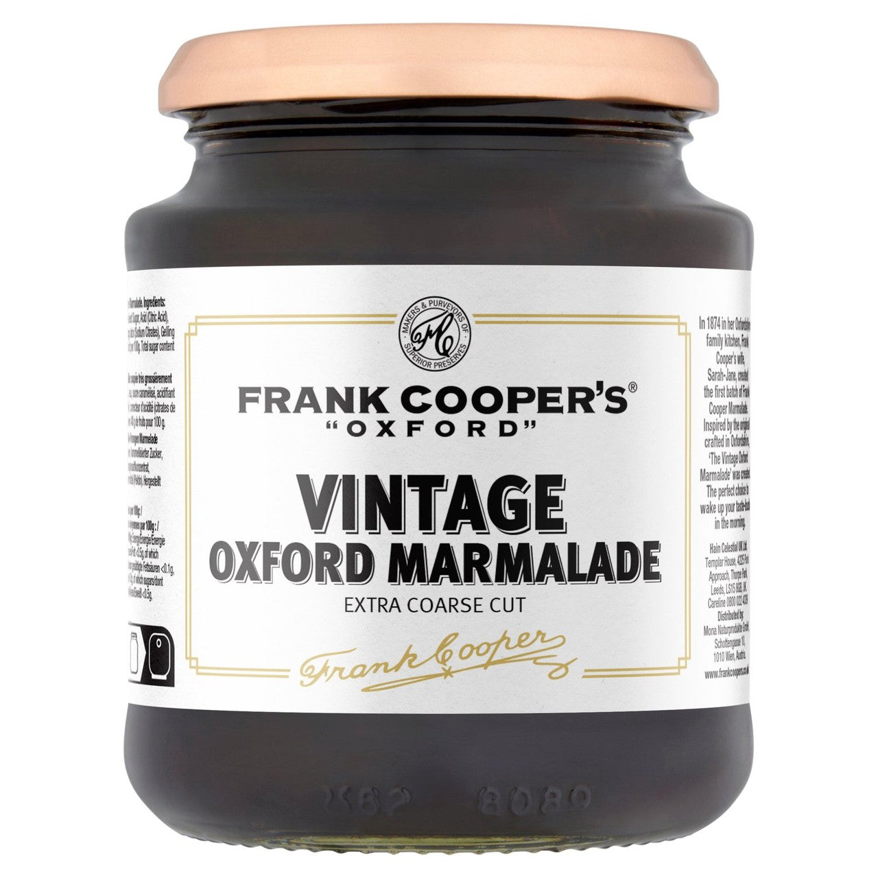 - Crafted based on a recipe originally created by Frank Cooper's wife in 1874.