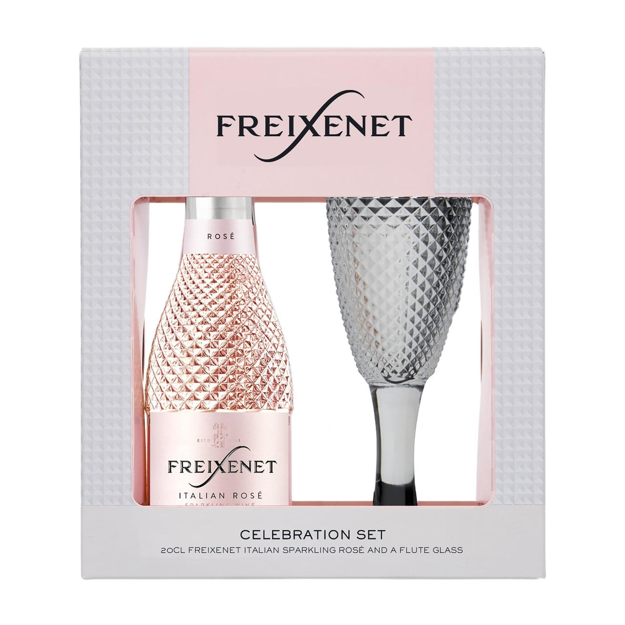 This Freixenet Celebration Set provides a perfectly paired experience featuring Italian sparkling rosé wine alongside an exclusive presentation glass.
