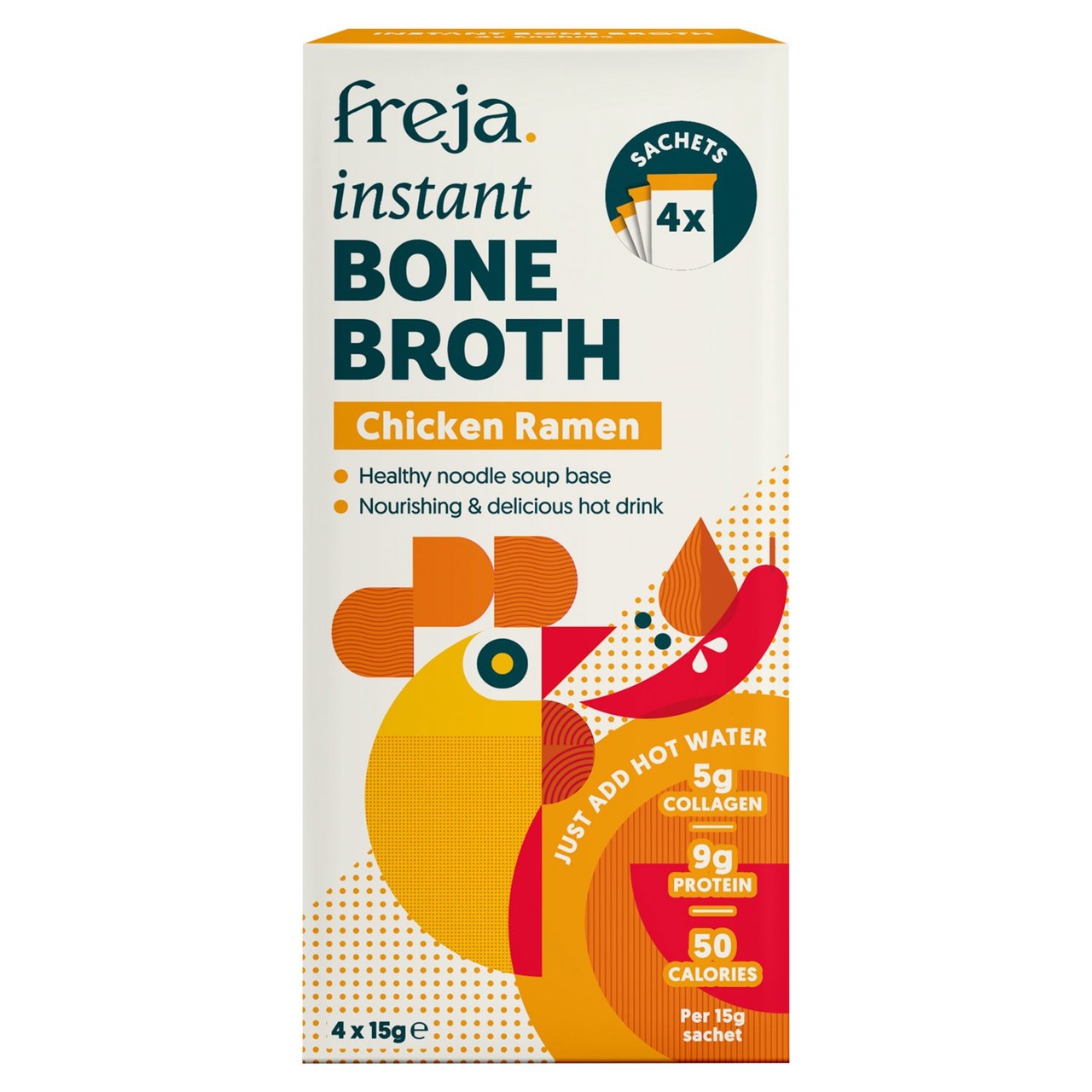 Freja Instant Bone Broth delivers the foundational nutrition of traditional broth in a highly convenient format, accented with classic ramen flavour notes. This Original Superfood is designed to support your daily nutritional intake efficiently. It acts as a great base for quick meals or as a warming standalone drink when time is limited.
