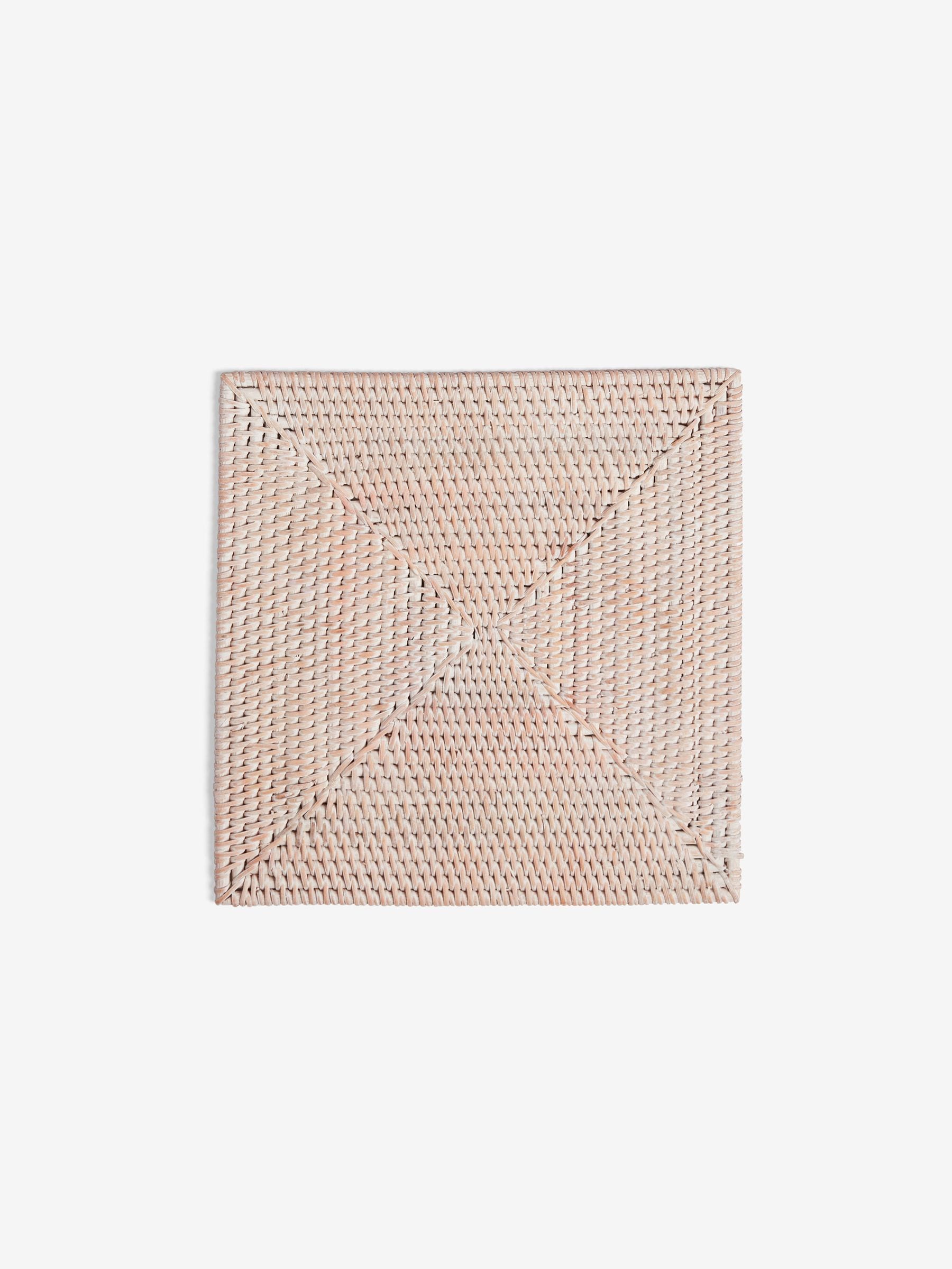 Elevate your tablescape with the white woven rattan placemat from French Connection. Handwoven from the finest quality rattan, this square shaped placemat is the perfect foundation piece for your place settings.