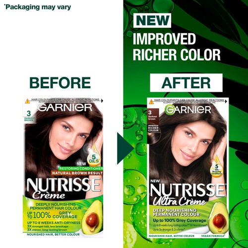 Garnier Nutrisse Ebony 3 Darkest Brown Permanent Hair Dye