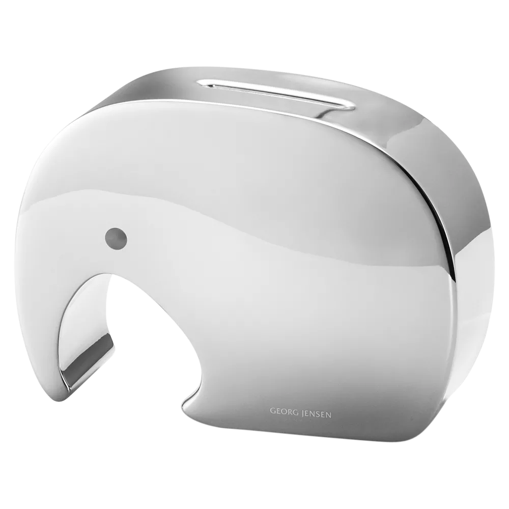 Give a charming gift with the miniature Georg Jensen Moneyphant, a smaller version of the iconic design. This adorable money box is perfect for children or new parents, adding a touch of Danish design to any nursery.