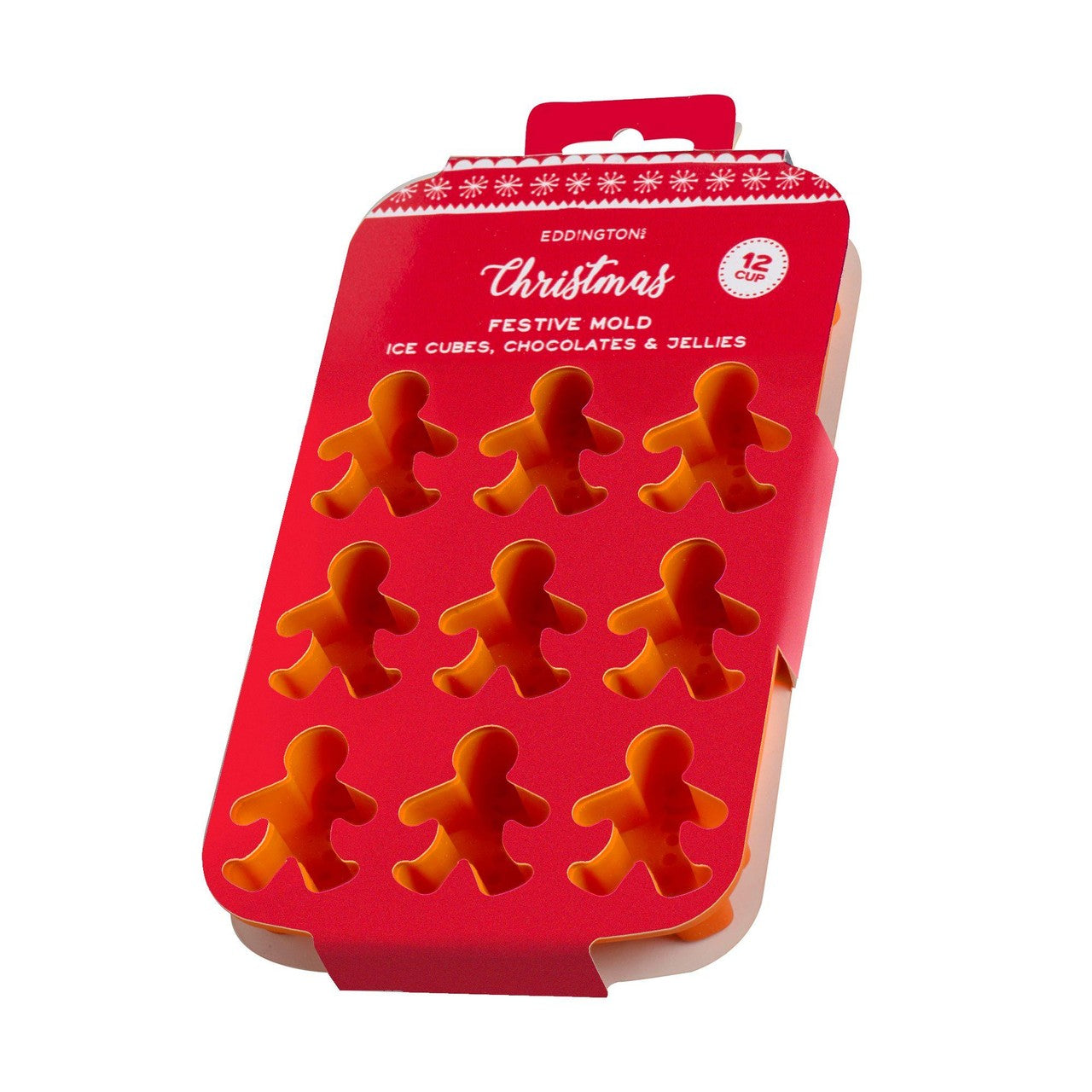 Create perfectly shaped festive treats with this Eddingtons Gingerbread Man silicone mould. This versatile tray features twelve cavities, allowing you to easily produce multiple themed items simultaneously. The flexible material ensures easy release of your baked goods, chocolates, or frozen cubes.
