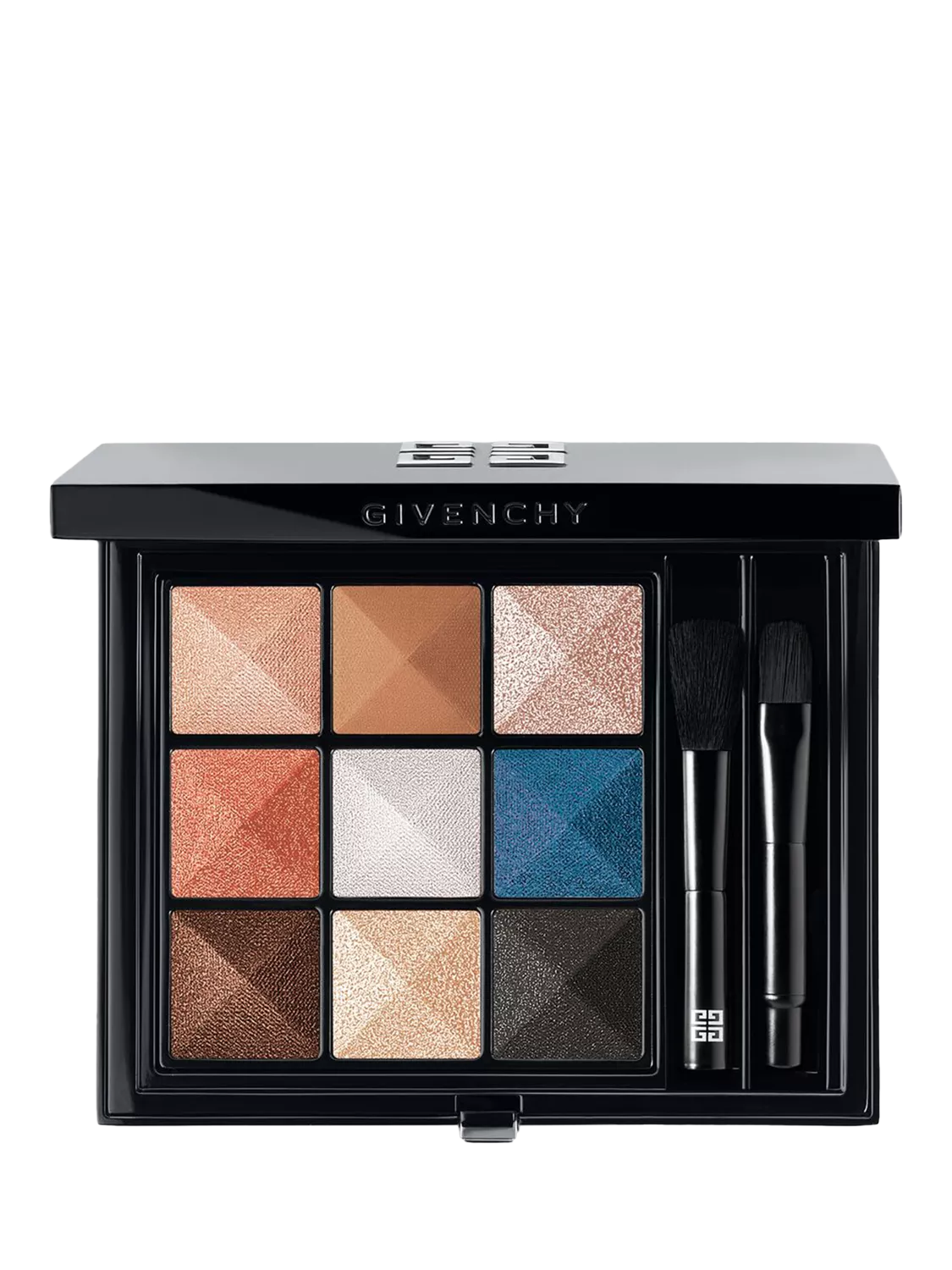 Ultra-sensorial and highly pigmented, this texture guarantees 12-hour* wear for an impeccable result all day long. Encased in a luxurious black compact adorned with the Maison's signature logo, the Givenchy Le 9 Palette includes a clip-on dual-tip brush for a made-to-measure, two-in-one result. Inside the case, each of the nine shades is moulded in the shape of Givenchy’s iconic prism design.