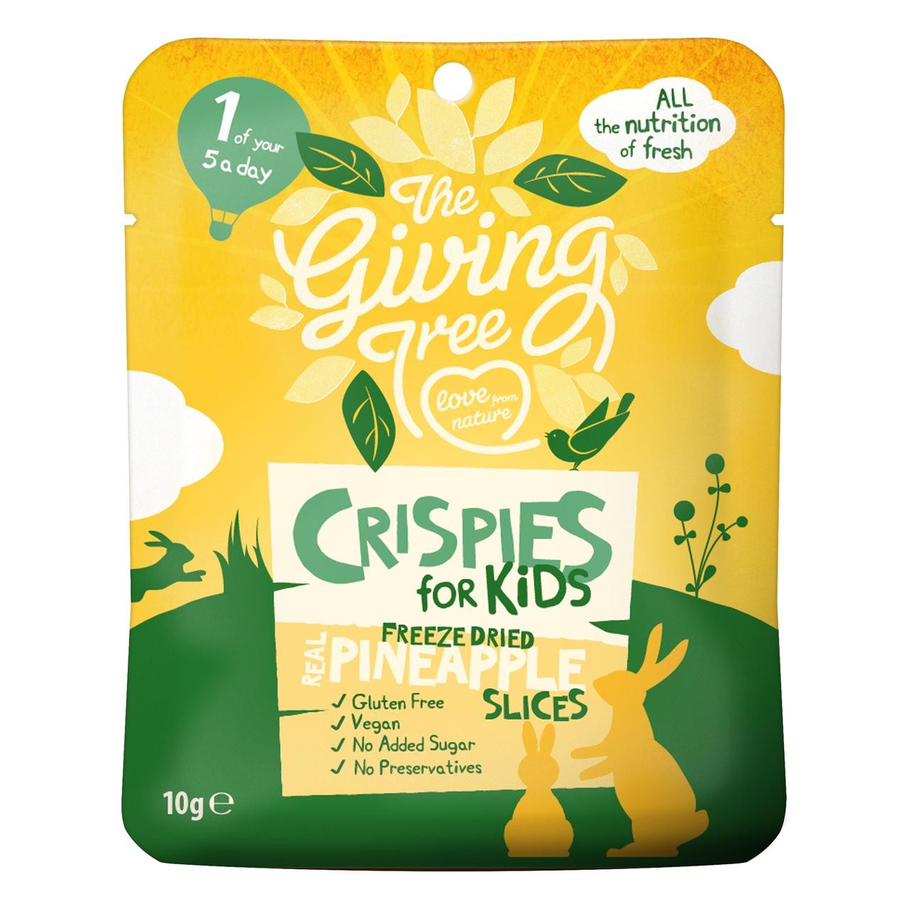 The Giving Tree offers freeze-dried pineapple crispies in a convenient snack format suitable for children. These whole fruit crisps are designed to contribute positively to your child's daily nutritional intake. They maintain the original flavour profile while offering dietary benefits suitable for various requirements.