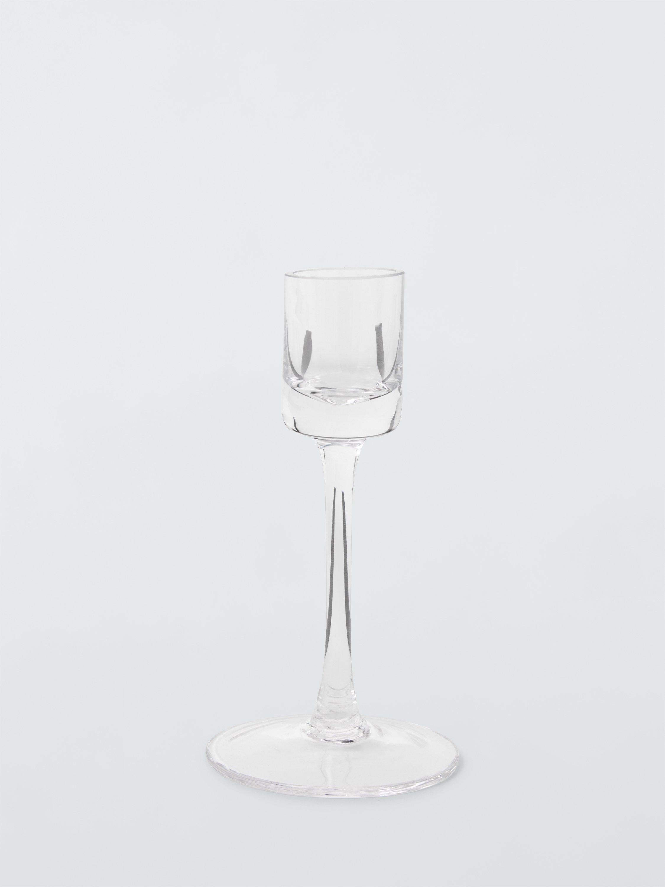 This John Lewis ANYDAY Glass Candlestick Holder stands 13cm tall. The simple, clear glass stem reflects ambient light sources within your room perfectly. It provides an elegant focal point for dining tables or mantelshelves. This high-quality glassware piece is essential for creating ambience throughout your home decor scheme today. Perfect.