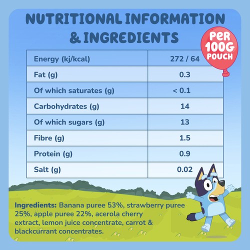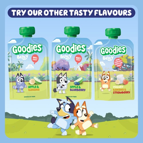 These Goodies Bluey themed fruit pouches offer a simple way for children to enjoy real fruit refreshment. This multipack provides a convenient, on-the-go snack option suitable for various daily routines.