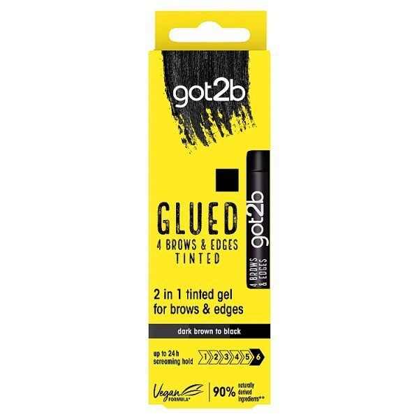 achieve that wow brow moment got2b tinted glued 4 brows edges gel gives denser and fuller looking brows and fixed edges to fulfil both your colour and styling needs in one go the tinted and dermatologically tested gel will keep the brows and edges in shape all day long this product is fragrancefree and easily removed using warm water and gentle soap up to 24h screaming hold brow gel buildable colour naturally defined look fragrancefree colour and styling in one go