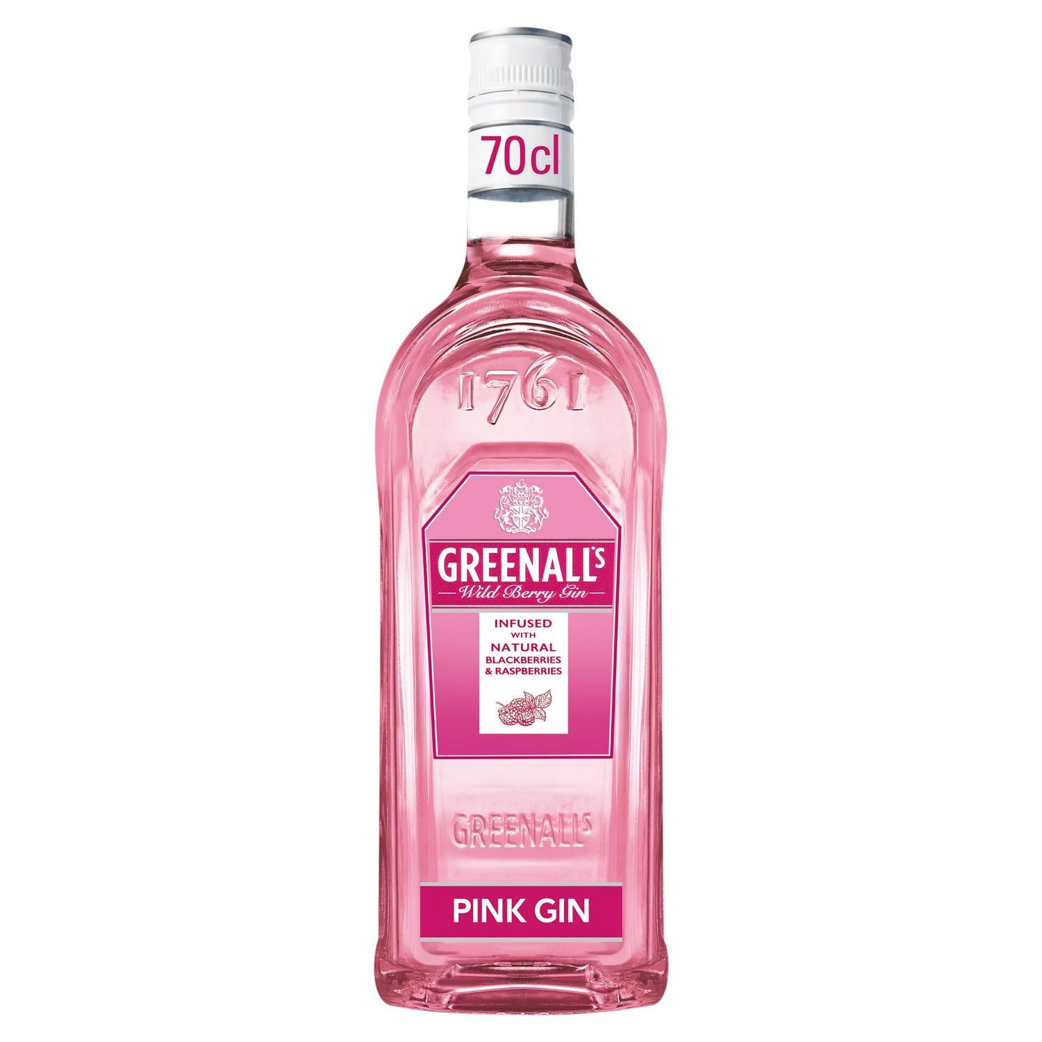 ABOUT Greenall's award-winning Original London Dry Gin is infused with blackberries and raspberries to create the smooth taste of Greenall’s Wild Berry Pink Gin, without the addition of sugar or sweetener