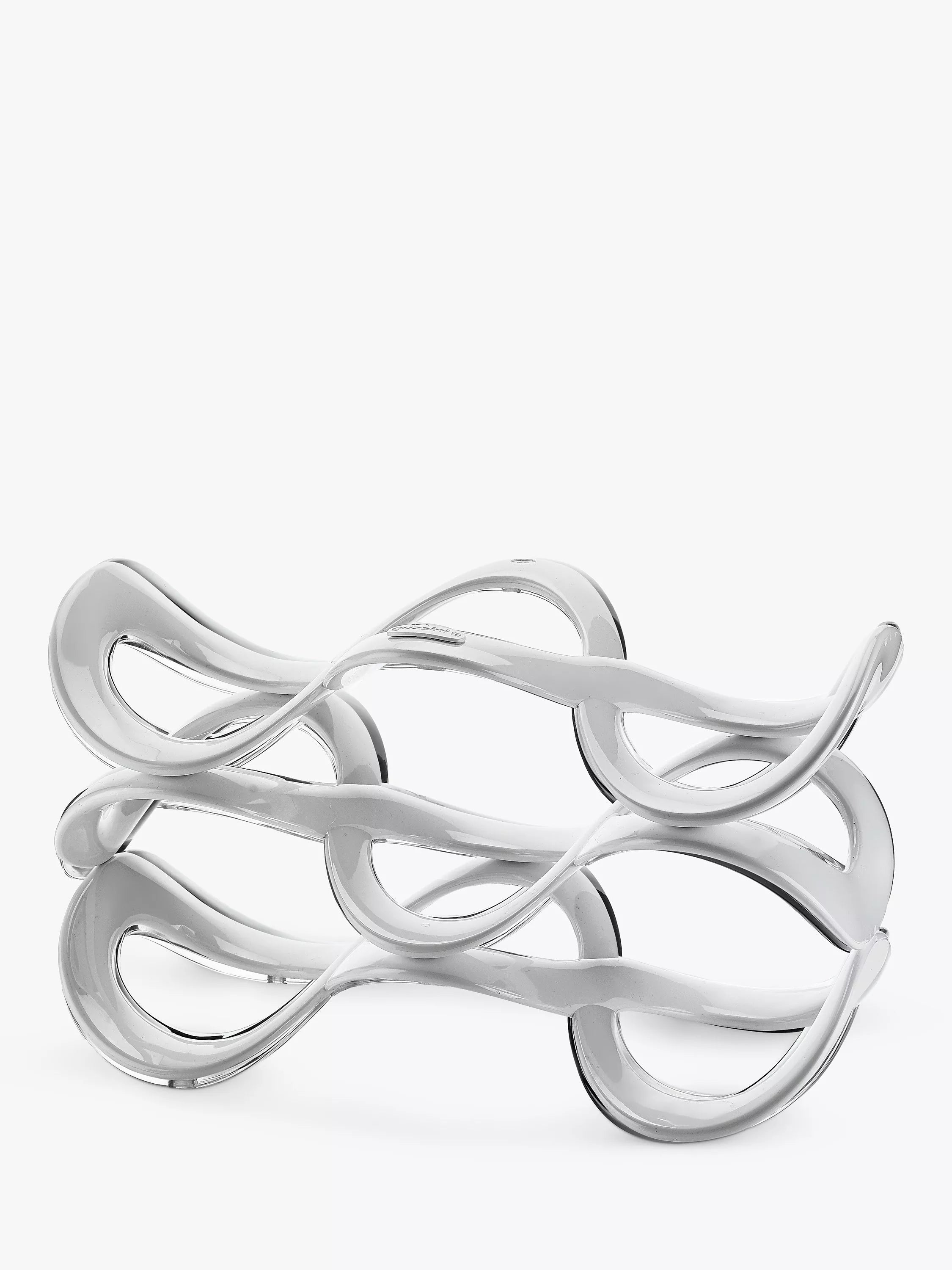 A wine rack and an attractive ornament, made in Italy by Guzzini. This universal bottle rack has an original form: a strip of acrylic material, sinuously interwoven to create a wine holder for up to five bottles of various sizes.
