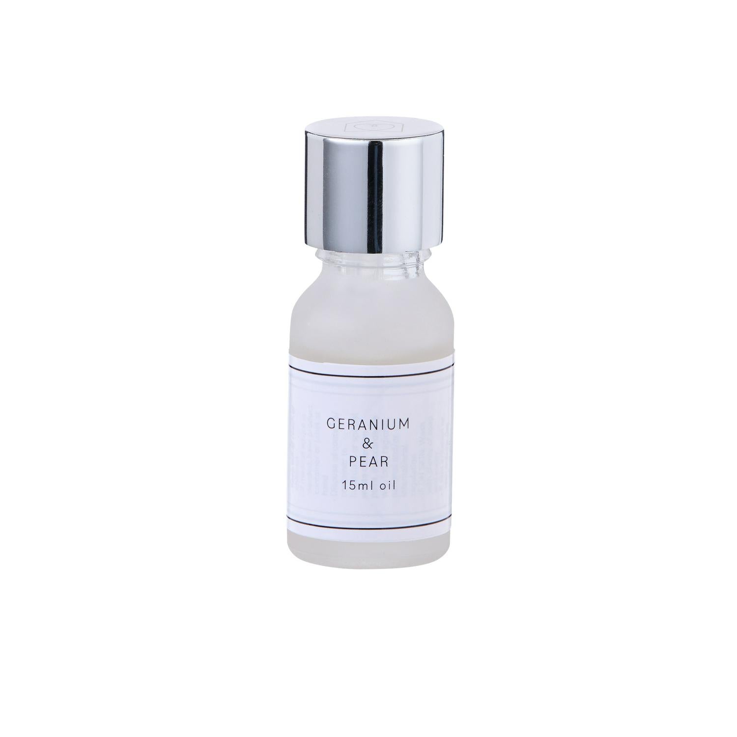 Read MoreEnjoy a refreshing scent with this fragrance oil. Simply pour into a reed diffuser and let the floral fragrance of geranium mingle with the fresh and fruity scent of pear. Comes in a frosted glass bottle with a silver lid.