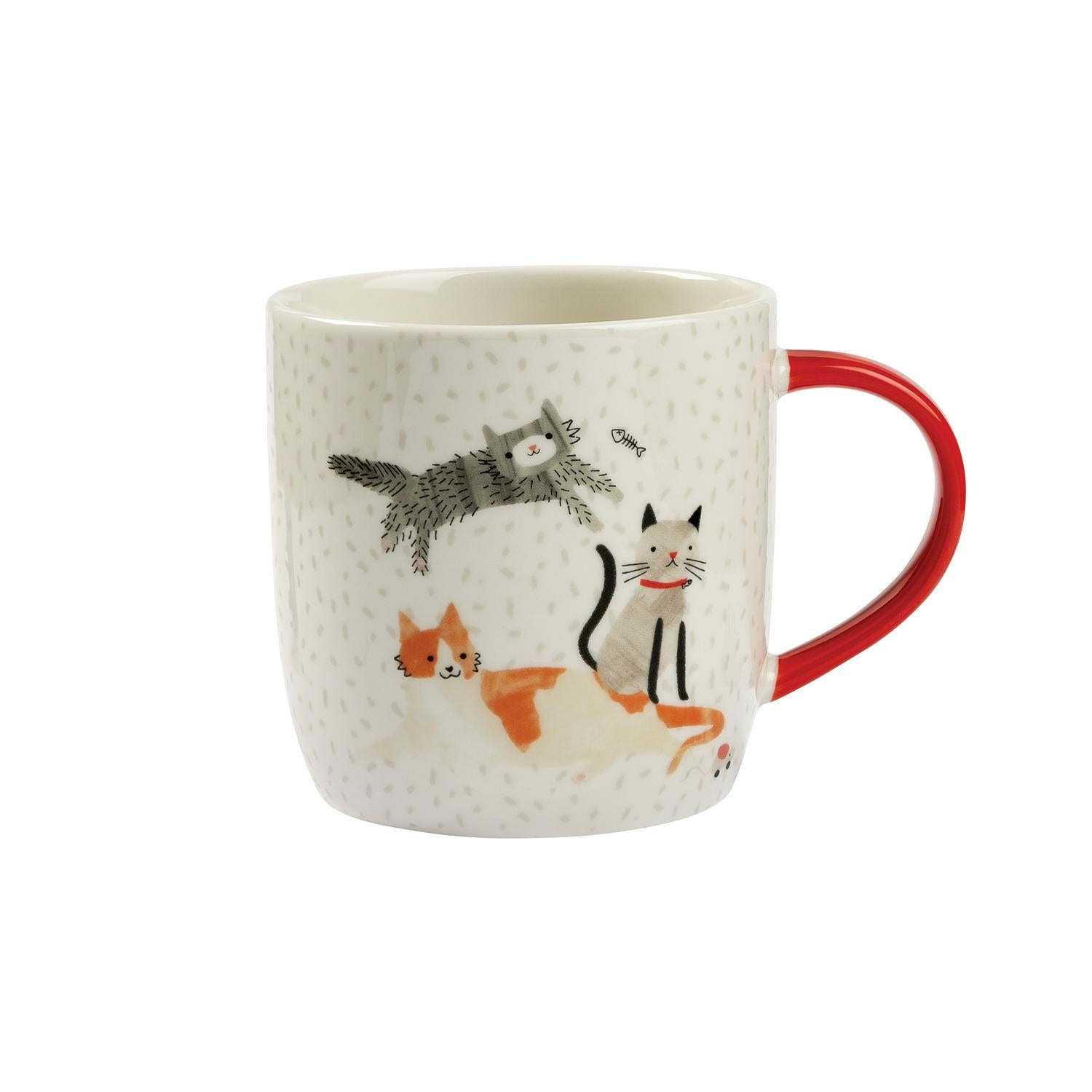 Read MoreCat lover? Kit yourself out with this cute kitty mug. Features adorable, feline friends on a speckled white background with a hot, red handle for a bold pop of colour.