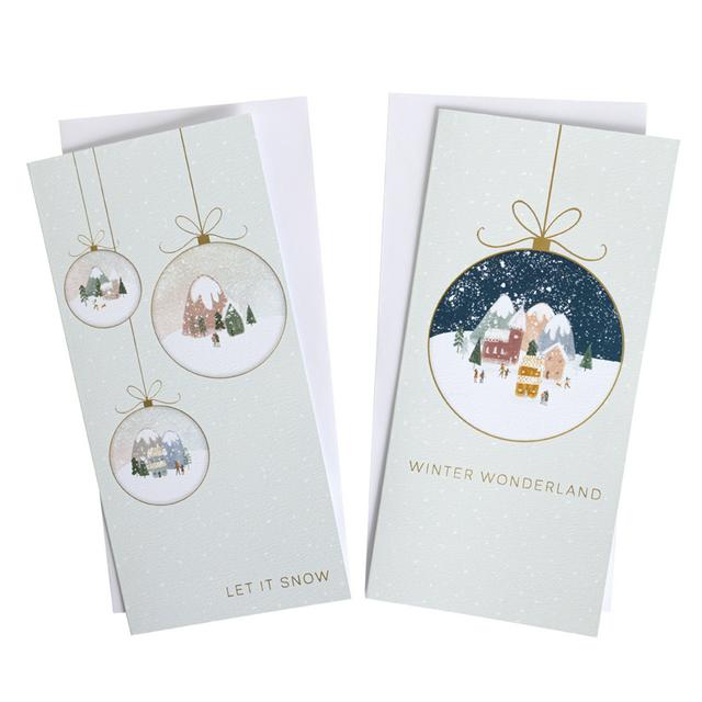 Send thoughtful seasonal greetings with this convenient pack of ten tall Christmas cards. The classic design features illustrated snowy scenes encased within detailed hanging baubles, offering a traditional and comforting festive look this year.