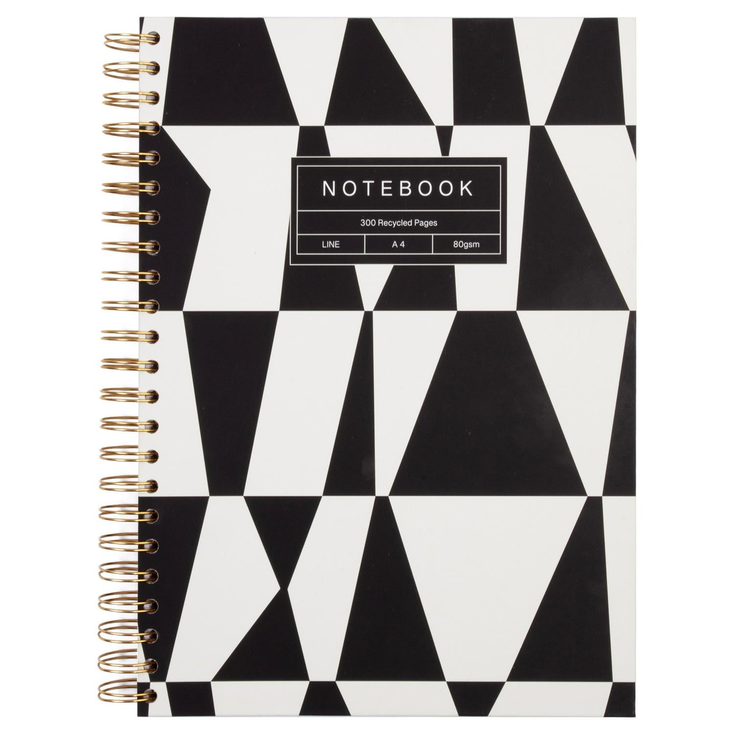 Read MoreThe write stuff. This mighty mono A4 wired notebook gives you 150 ruled pages to fill. From shopping lists to wish lists, must do’s to mustn’t forgets. With plenty of room for some creative scribbling in between. Wiro bound A4 notebook with line pages, the cover is geometric, and the wiro is gold.
