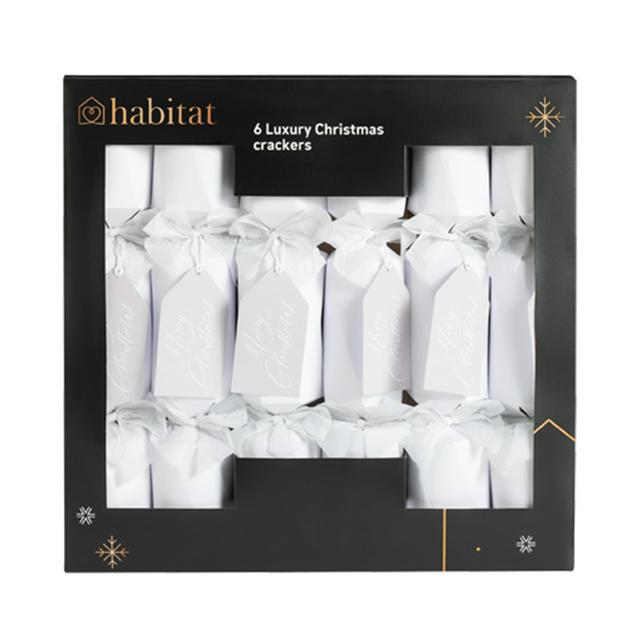 Introduce a clean, cool aesthetic to your seasonal celebration with these Habitat Twisted Barrels crackers. This set contains six elegantly designed, snow-white crackers ready for your festive table setting. They offer traditional fun presented in a refined style.