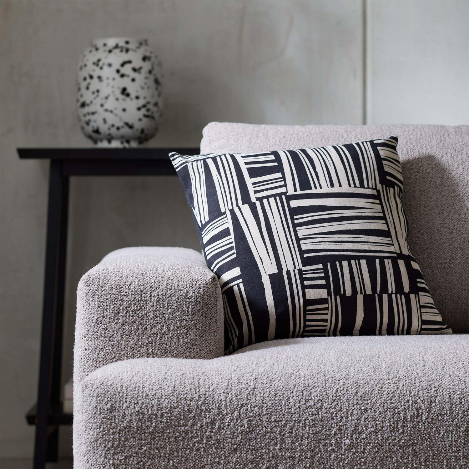 This Habitat Mono cushion showcases an industrial-inspired monochromatic print, making it an arty and stylish accessory for your home. Designed for easy comfort, it combines natural fibres in the cover with a soft, squashy recycled filling. This piece offers a smart look without compromising on practicality for daily use.