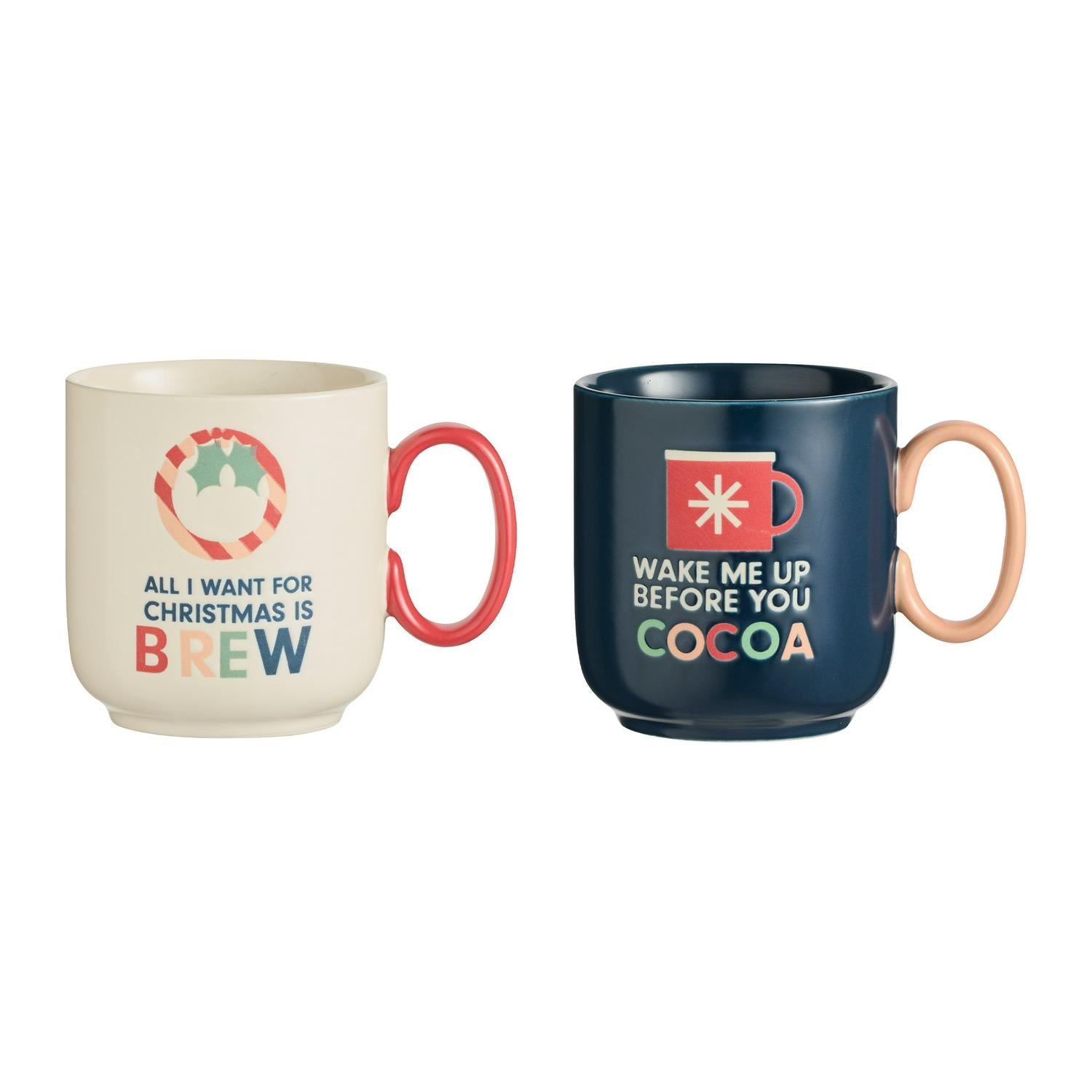 Enjoy a festive hot drink with this Habitat mug, constructed from durable stoneware for reliable, repeat use throughout the season. As this is an assortment, the specific slogan design you receive will be a fun, seasonal surprise.