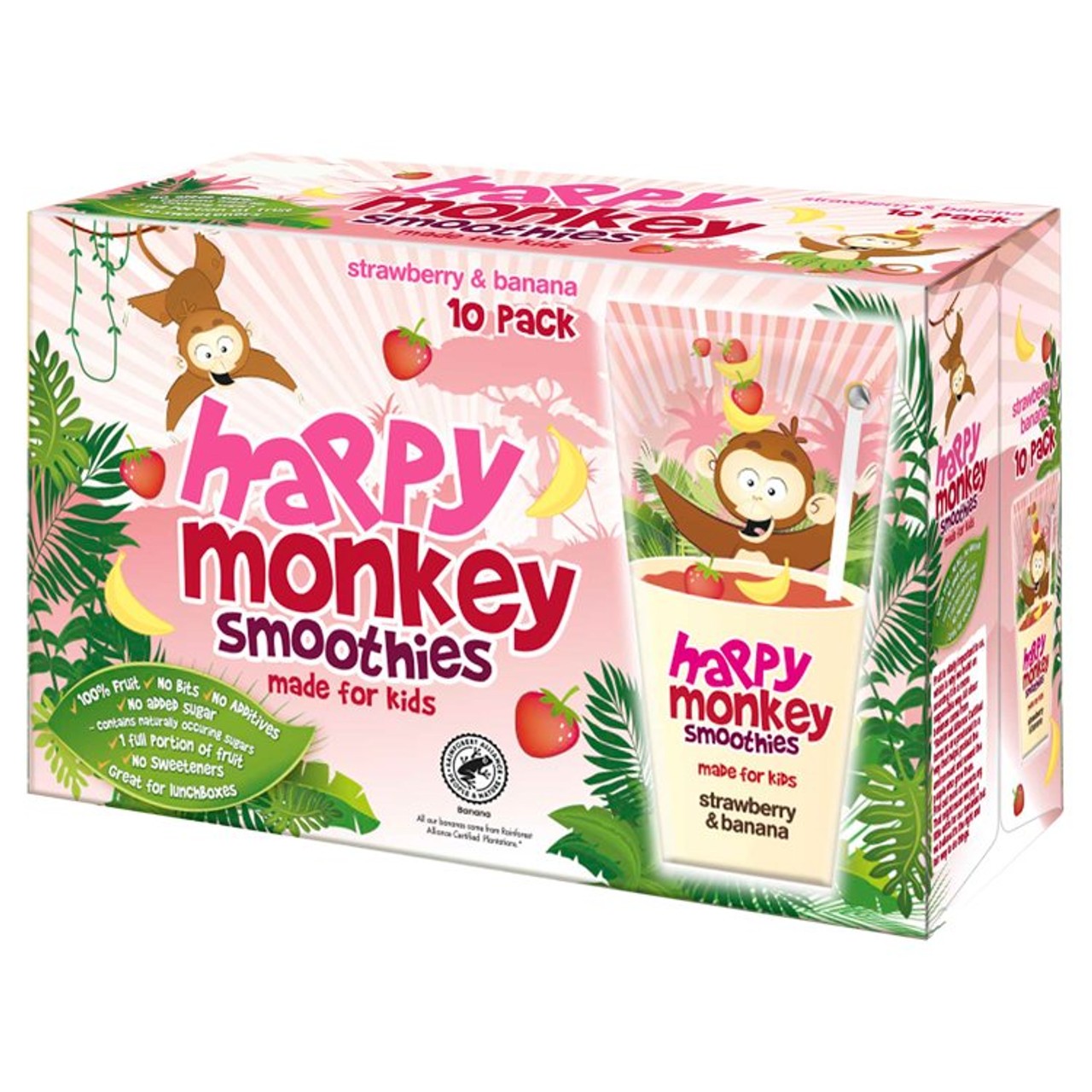 These Happy Monkey pouches are specifically designed for children’s enjoyment and convenience. Each pack contains ten servings of a delicious strawberry and banana blend for easy snacking. This multipack ensures that providing fruit portions is simple during busy routines. It delivers one full portion of fruit per serving, supporting daily nutritional intake goals for young consumers.